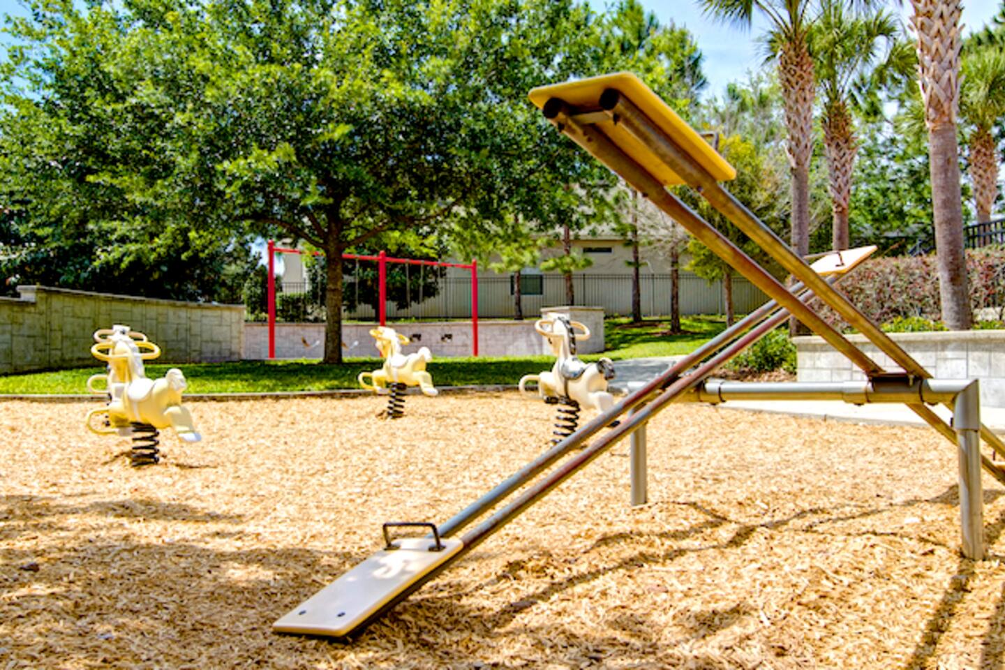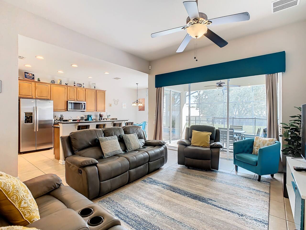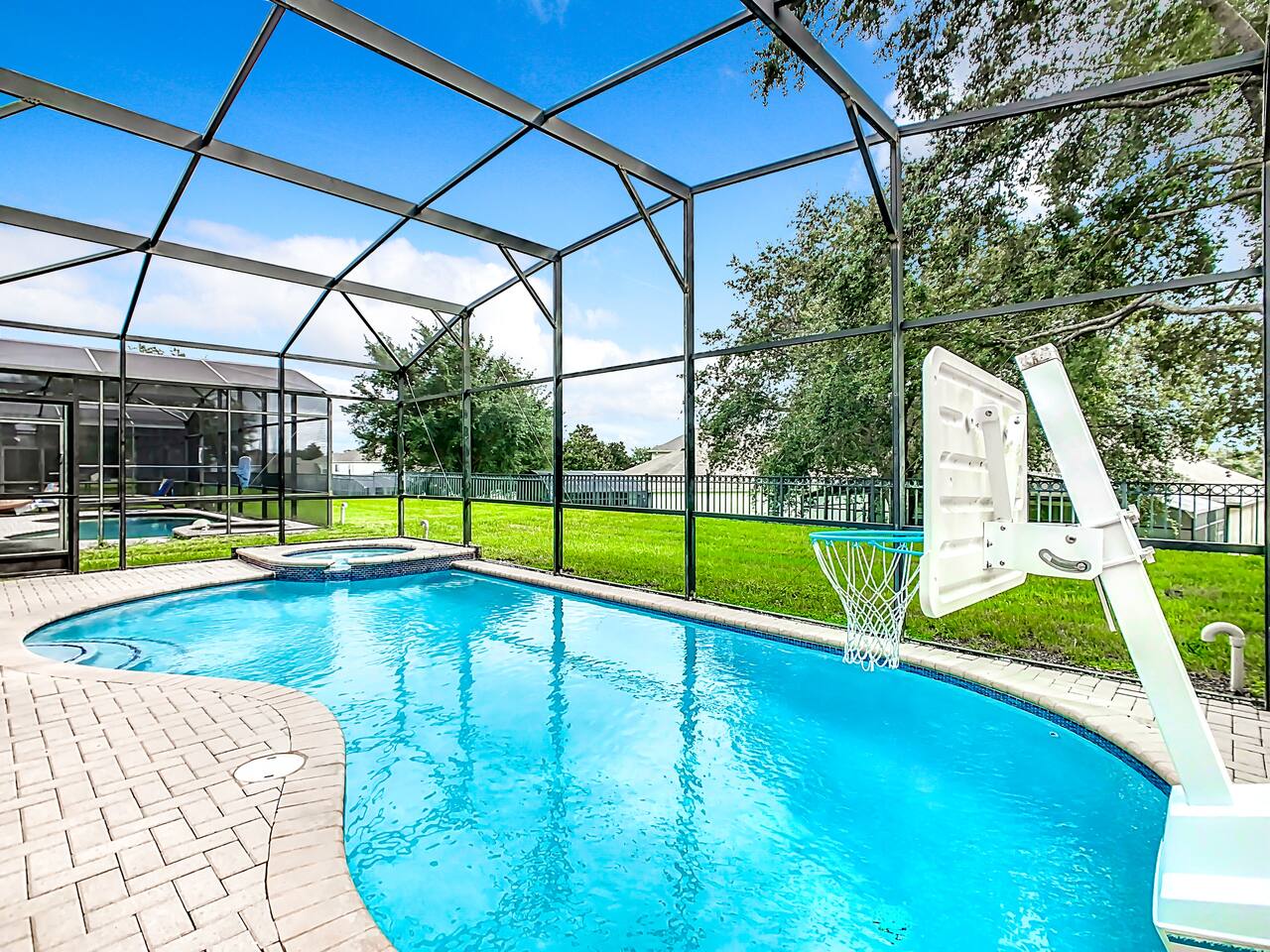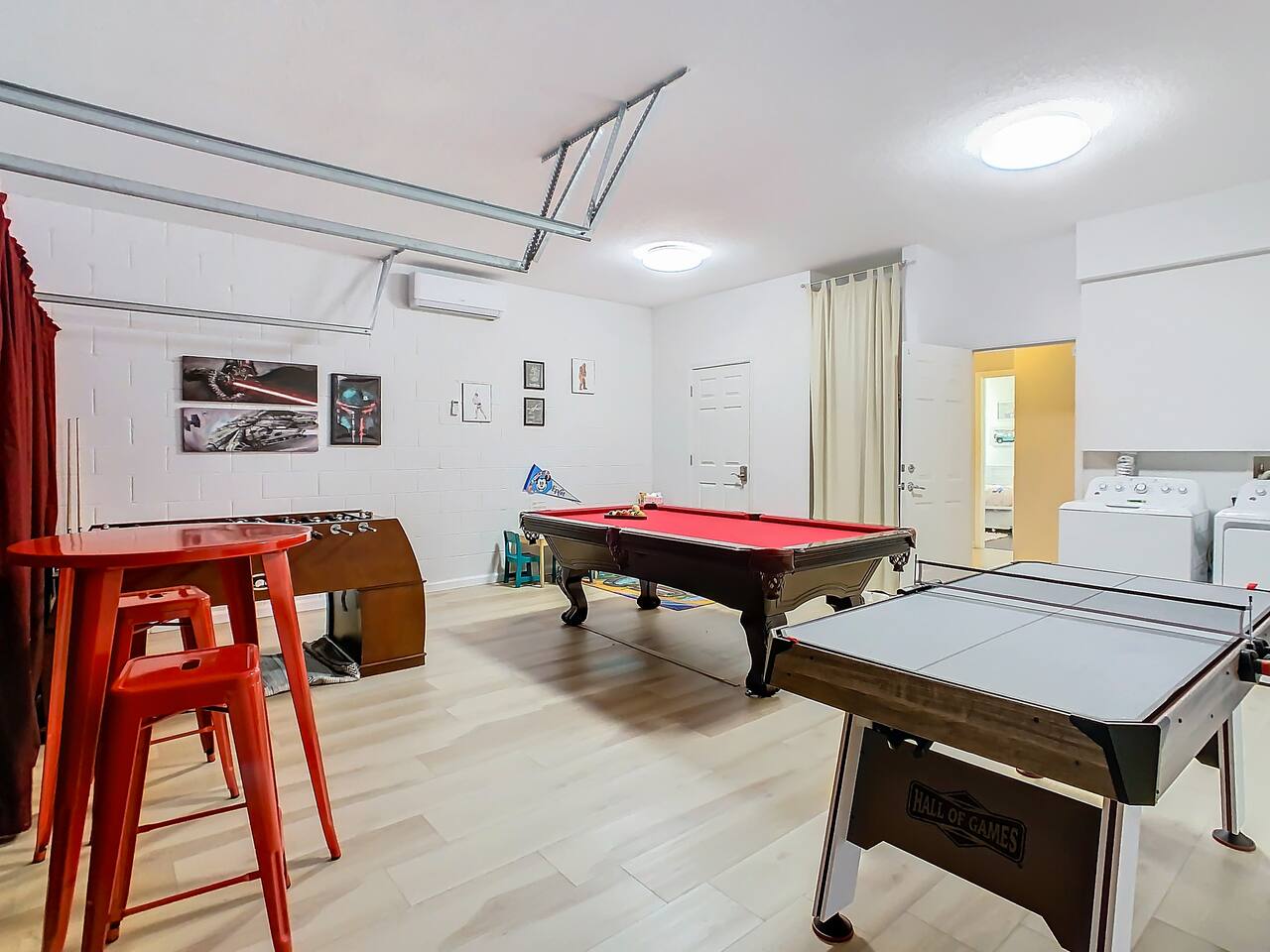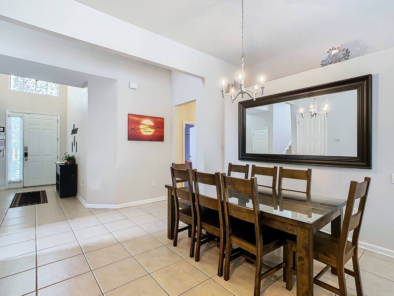 ABOUT BRIGHT SUNS GETAWAY... On the FIRST FLOOR you'll find a spacious open floor plan that leads from the front foyer entrance to your private backyard oasis. •The LIVING AREA is tastefully decorated and furnished with plush seating and a Smart TV for streaming your favorite movies. As you enter this area, you'll be greeted with an amazing view of your private lanai from the wide ceiling-to-floor windows. •The elegant DINING ROOM includes a table that easily seats 8 and is located between the kitchen and living area, making it the perfect place for family gatherings •The fully-stocked KITCHEN includes all your favorite small appliances, countertop seating, and a cozy eating area that leads out to the covered lanai. •The garage has been repurposed as a family-friendly GAME ROOM...the perfect place to enjoy some friendly competition and work off some energy! Enjoy a game of pool or foosball in this air-conditioned space. And the littles in your group will LOVE the play area we've added just for them! •The first floor also has TWO King bedroom suites and one bedroom with a trundle bed. * * * * * All BEDROOMS have private bathrooms, Smart TVs with Roku, ceiling fans, and inviting, comfortable beds. It's like having your own private retreat! (3) KING Ensuite Bedrooms (2 on the first floor, 1 on the second floor) (1) TWIN Ensuite Bedroom with 3 Twin Beds (located on the 2nd floor) (1) FULL Ensuite Bedroom, with TWIN Trundle Bed (locate on the 1st floor) The garage area has been renovated as a family-friendly, air-conditioned GAME ROOM and is quite popular among our guests. Enjoy a game of Foosball or a round of Pool, while the littles hang out in a special play area just for them. Enjoy a little friendly competition at our combination Ping Pong and Air Hockey gaming table. The perfect place to work off some energy! WAIT THERE'S MORE! Our house is conveniently located within a short walking distance of TWO PLAYGROUNDS! The first is right across the street from our house, with a large common area that's perfect for a game of soccer or kickball. The second is just 4 houses away at the corner of our street and Teascone Blvd.