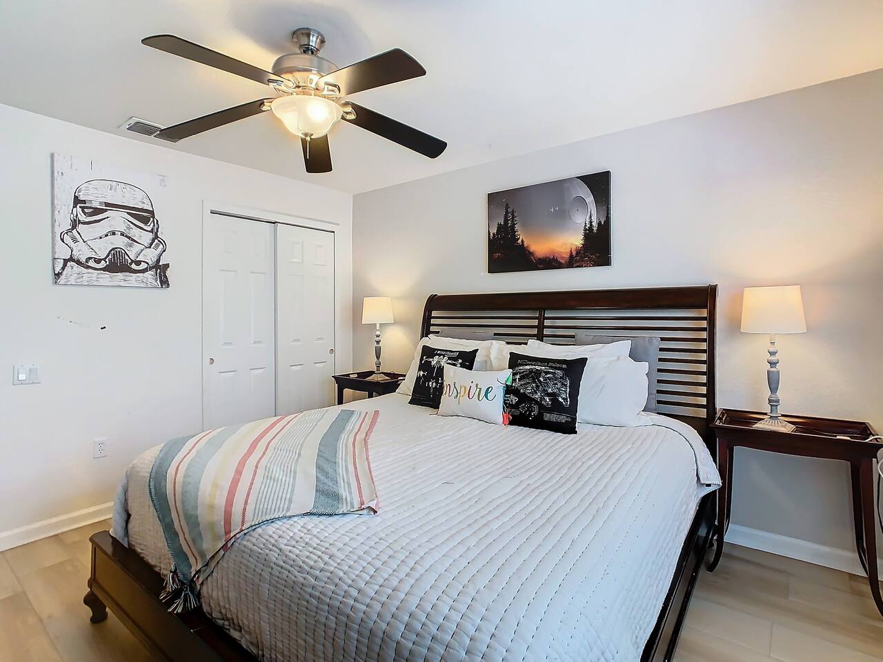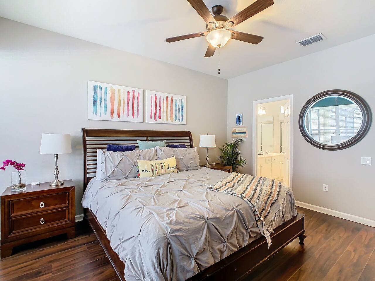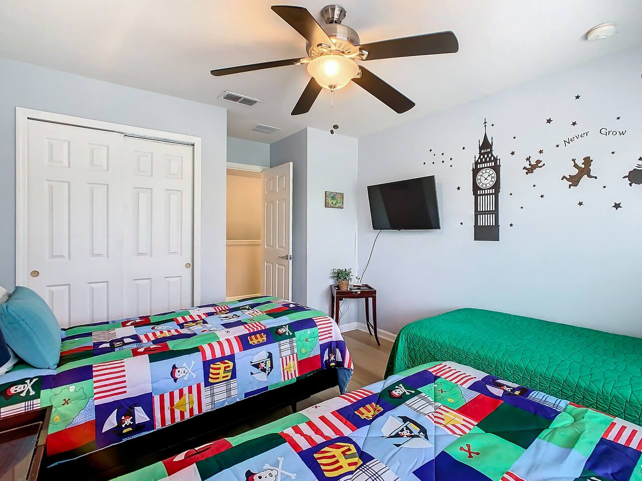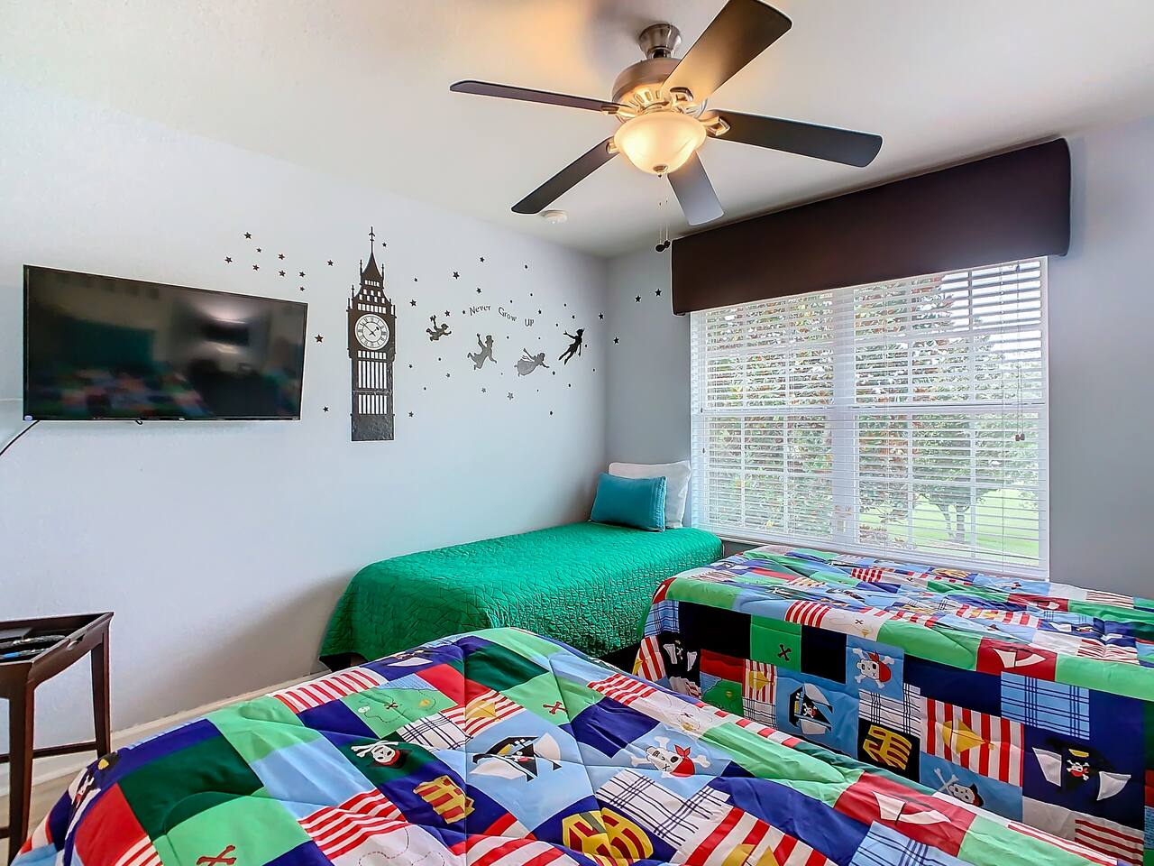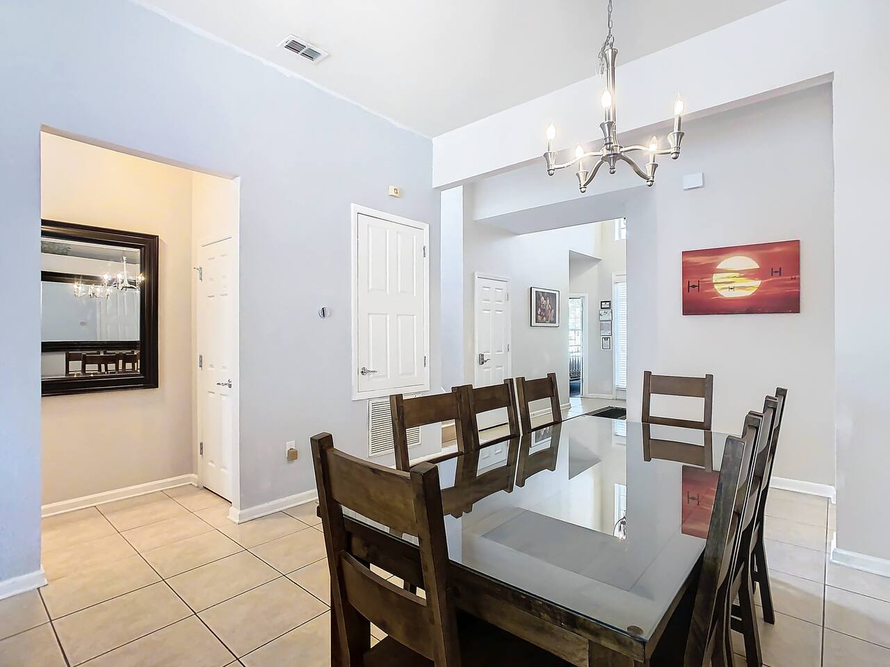 ABOUT BRIGHT SUNS GETAWAY... On the FIRST FLOOR you'll find a spacious open floor plan that leads from the front foyer entrance to your private backyard oasis. •The LIVING AREA is tastefully decorated and furnished with plush seating and a Smart TV for streaming your favorite movies. As you enter this area, you'll be greeted with an amazing view of your private lanai from the wide ceiling-to-floor windows. •The elegant DINING ROOM includes a table that easily seats 8 and is located between the kitchen and living area, making it the perfect place for family gatherings •The fully-stocked KITCHEN includes all your favorite small appliances, countertop seating, and a cozy eating area that leads out to the covered lanai. •The garage has been repurposed as a family-friendly GAME ROOM...the perfect place to enjoy some friendly competition and work off some energy! Enjoy a game of pool or foosball in this air-conditioned space. And the littles in your group will LOVE the play area we've added just for them! •The first floor also has TWO King bedroom suites and one bedroom with a trundle bed. * * * * * All BEDROOMS have private bathrooms, Smart TVs with Roku, ceiling fans, and inviting, comfortable beds. It's like having your own private retreat! (3) KING Ensuite Bedrooms (2 on the first floor, 1 on the second floor) (1) TWIN Ensuite Bedroom with 3 Twin Beds (located on the 2nd floor) (1) FULL Ensuite Bedroom, with TWIN Trundle Bed (locate on the 1st floor) The garage area has been renovated as a family-friendly, air-conditioned GAME ROOM and is quite popular among our guests. Enjoy a game of Foosball or a round of Pool, while the littles hang out in a special play area just for them. Enjoy a little friendly competition at our combination Ping Pong and Air Hockey gaming table. The perfect place to work off some energy! WAIT THERE'S MORE! Our house is conveniently located within a short walking distance of TWO PLAYGROUNDS! The first is right across the street from our house, with a large common area that's perfect for a game of soccer or kickball. The second is just 4 houses away at the corner of our street and Teascone Blvd.