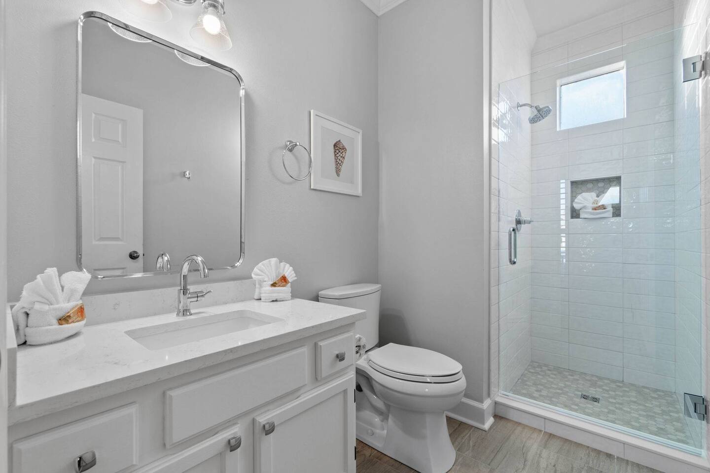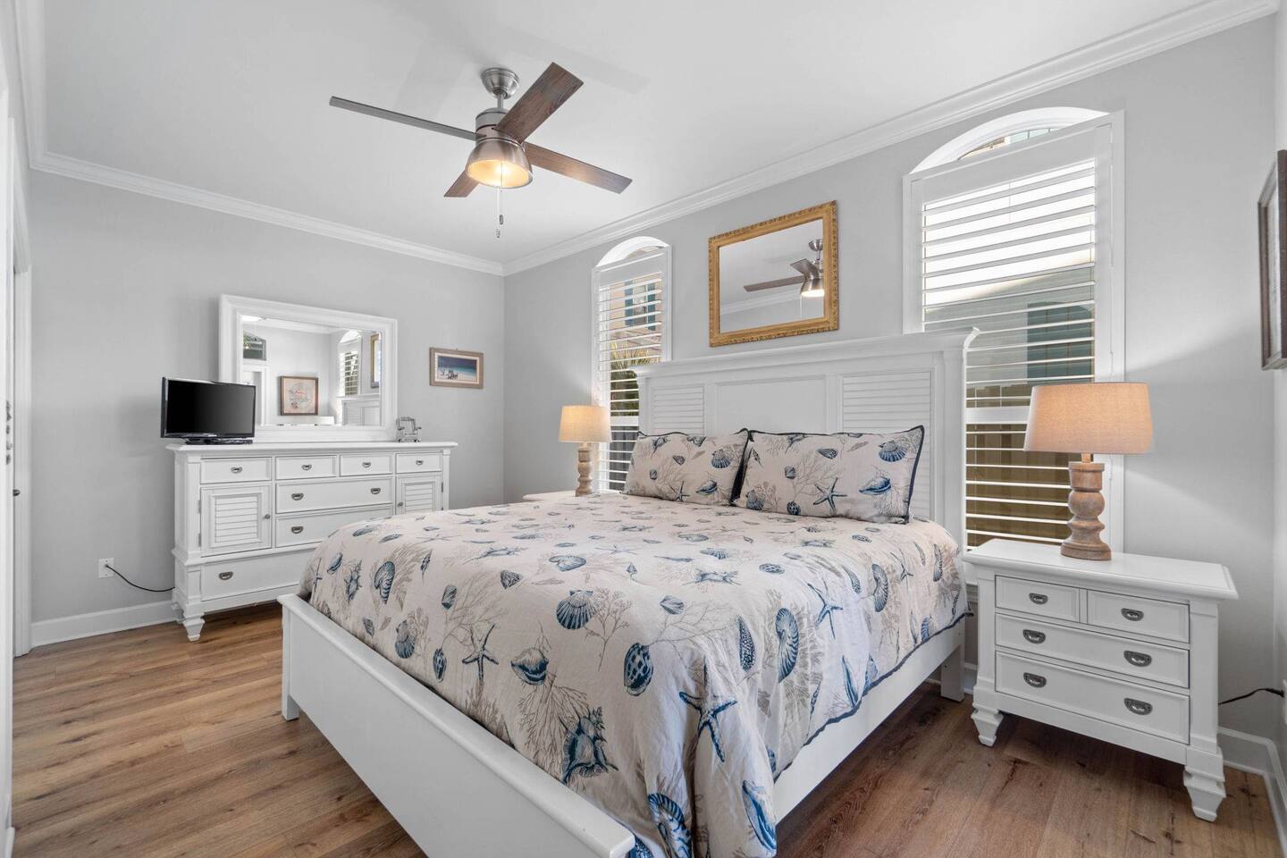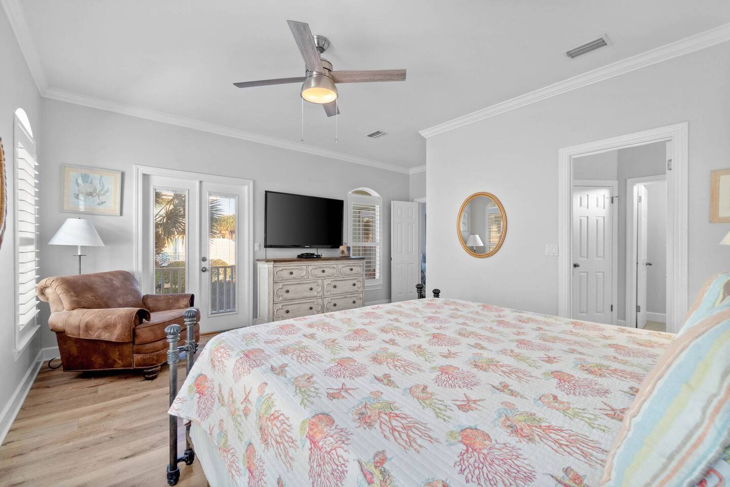 ABOUT SERENDIPITY... This beautifully furnished beach house is located on the corner of a quiet cul-de-sac, surrounded by lush tropical landscaping, just steps from the Emerald Shores community pool and private beach! LIVING AREAS (2): Relax in the comfortable first-floor living area and enjoy our 75" HD LCD SMART TV with soundbar! Enjoy all your favorite streaming services or catch your favorite shows on our High Def Cable Box, with DVR. Or...head upstairs and enjoy the den/loft area which has a 40" LCD TV with high definition channels (this living area also has a comfortable sleeper sofa) KITCHEN/DINING AREA: As you enter our home, you will be greeted with a spacious, newly remodeled kitchen and adjacent dining area. The kitchen has been fully-stocked with all your favorite cooking tools and small appliances. Don't see what you need? Let us know and we'll send it over! The dining area is separated from the kitchen by a counter with stools, creating the perfect space to hang out with friends and family. Whether it's meal time or game night, this area will be well-used by your group! WHERE YOU'LL SLEEP: This home's sprawling layout includes a first floor King suite with a private patio. Upstairs you'll find two additional KING Bedrooms and a sleeper sofa in the loft area. On the first floor we keep two comfortable rollaway twin beds with bedding - perfect for a couple extra guests. (Max Occ 8-10 guests) All bedrooms have ceiling fans, comfortable bedding, and Smart TVs, creating the perfect private retreat! Note: We do not have a pack-and-play or crib on site. We can recommend a local company if you wish to rent one during your stay. (2) KING Ensuite Bedrooms (One on each floor) (1) KING Bedroom (2nd floor) (1) QUEEN Sleeper Sofa (located in the upstairs den/loft area) (2) Oversized TWIN rollaway cots ENJOY THE OUTDOORS Head outside during your stay and enjoy our two furnished porches on the lower level, with a complimentary grill. Or relax in the morning on either of our 2 upper balconies. All outdoor areas are furnished with comfortable seating. WAIT THERE'S MORE... The 2nd floor laundry room has a full size washer and dryer, iron/board, and a starter supply of detergent pods. On the porch you'll find a complimentary beach wagon to use for your day at the beach or the pool. OUR COMMUNITY When you stay at Serendipity, you'll enjoy all the amenities provided by the top-rated Emerald Shores resort community. This exquisite gated community sits between Hwy 98 and Scenic 98 in the Destin/Miramar Beach area. With entry gates on both ends, you'll have easy access to explore the neighboring areas along the Emerald Coast. EMERALD SHORES PRIVATE BEACH Take a short 5 minute stroll to our gated PRIVATE BEACH or hop on the complimentary beach tram (mid-May through mid-Aug). There you'll find the Emerald Shores snack bar pavilion with restrooms, rinse showers, picnic tables, and plenty of space to park your bikes or beach wagon. Check in with our DEDICATED beach attendant to reserve chairs or an umbrella (provided by La Dolce Vita). FUN FACT: Emerald Shores is the ONLY community on Scenic 98 with a private beach, a private pavilion with snack bar and restrooms, AND a dedicated beach attendant! (During high seasons, our snack bar, picnic tables, and private restrooms make our pavilion a true HIDDEN GEM!) * * * * * SEASONAL WRISTBAND POLICY: Upon your arrival, you will need to obtain wrist bands from the Emerald Shores Beach Pavilion in order to access the resort amenities, including the private beach. There is a $30 cost per stay that covers everyone in your group. Instructions on how to obtain your wrist bands will be provided after your reservation is made. ** EMERALD SHORES is a sought-after gated community offering two community pools, a private Beach and Beach Pavilion, our own dedicated beach attendant, a tennis/pickleball court, basketball court, and seasonal beach tram service. The community is centrally located close to restaurants, bars, shopping, golf courses, and water sports with access to both Hwy 98 on the north and Scenic 98 on the south! We're just minutes from Destin, known as the "Luckiest Fishing Village in the World" where deep sea fishing is always a big draw! The powder, white beaches and the sparkling Emerald Green waters give true meaning to the word, 'Paradise'! The Destin/Miramar Beach area is abundant with restaurants, bars, shopping areas, golf, and water sports. We invite you to come see why so many vacationers visit this area year after year!