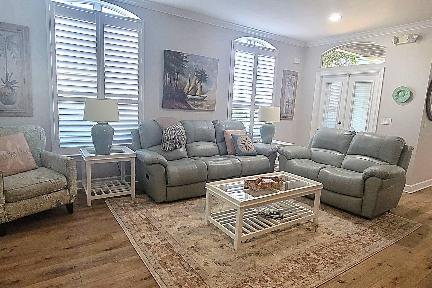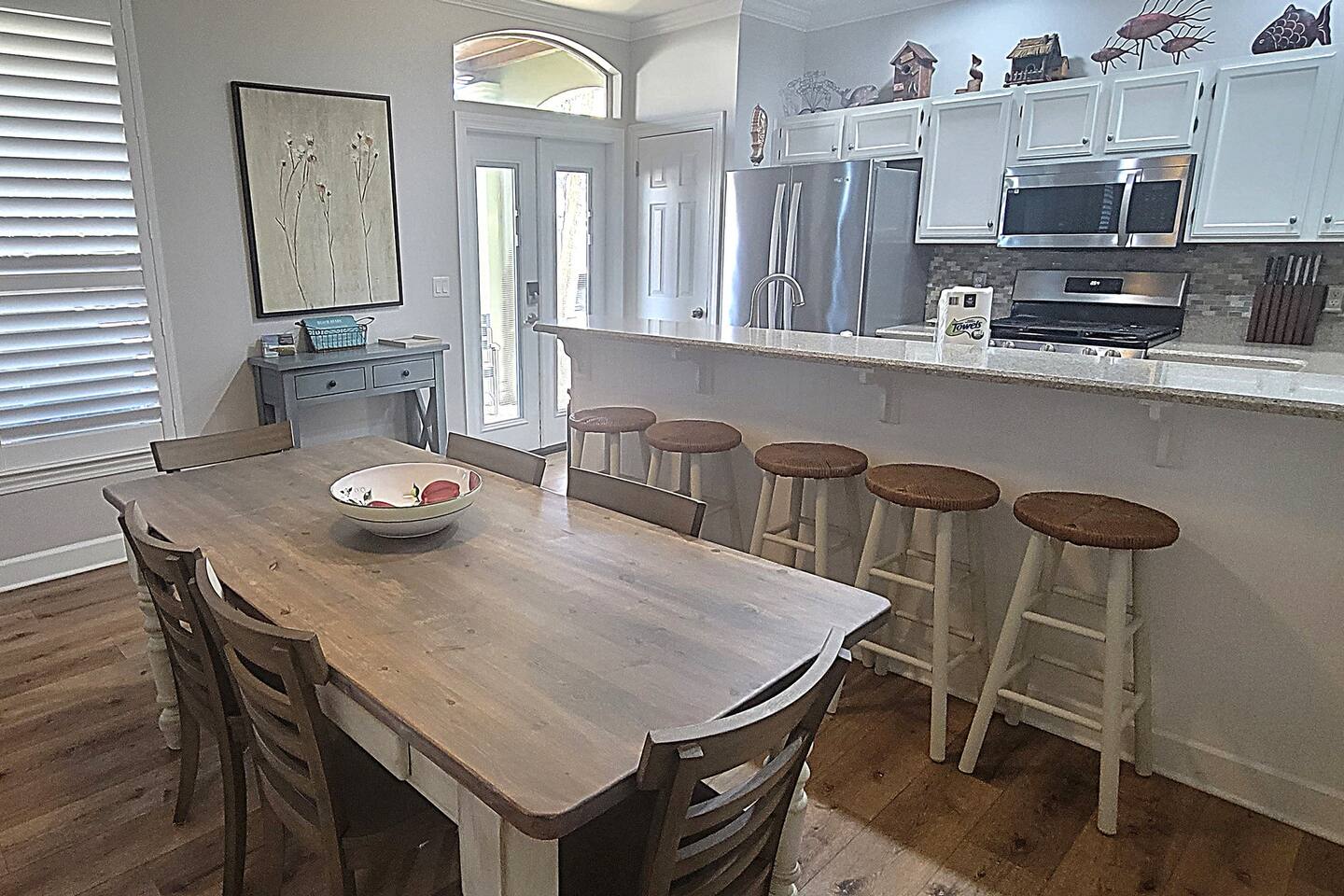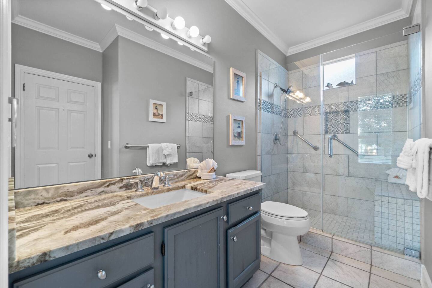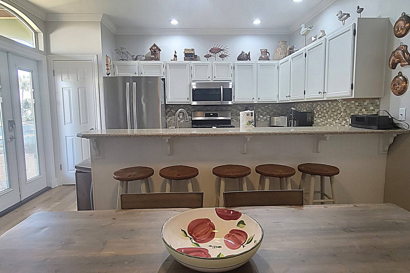 ABOUT SERENDIPITY... This beautifully furnished beach house is located on the corner of a quiet cul-de-sac, surrounded by lush tropical landscaping, just steps from the Emerald Shores community pool and private beach! LIVING AREAS (2): Relax in the comfortable first-floor living area and enjoy our 75" HD LCD SMART TV with soundbar! Enjoy all your favorite streaming services or catch your favorite shows on our High Def Cable Box, with DVR. Or...head upstairs and enjoy the den/loft area which has a 40" LCD TV with high definition channels (this living area also has a comfortable sleeper sofa) KITCHEN/DINING AREA: As you enter our home, you will be greeted with a spacious, newly remodeled kitchen and adjacent dining area. The kitchen has been fully-stocked with all your favorite cooking tools and small appliances. Don't see what you need? Let us know and we'll send it over! The dining area is separated from the kitchen by a counter with stools, creating the perfect space to hang out with friends and family. Whether it's meal time or game night, this area will be well-used by your group! WHERE YOU'LL SLEEP: This home's sprawling layout includes a first floor King suite with a private patio. Upstairs you'll find two additional KING Bedrooms and a sleeper sofa in the loft area. On the first floor we keep two comfortable rollaway twin beds with bedding - perfect for a couple extra guests. (Max Occ 8-10 guests) All bedrooms have ceiling fans, comfortable bedding, and Smart TVs, creating the perfect private retreat! Note: We do not have a pack-and-play or crib on site. We can recommend a local company if you wish to rent one during your stay. (2) KING Ensuite Bedrooms (One on each floor) (1) KING Bedroom (2nd floor) (1) QUEEN Sleeper Sofa (located in the upstairs den/loft area) (2) Oversized TWIN rollaway cots ENJOY THE OUTDOORS Head outside during your stay and enjoy our two furnished porches on the lower level, with a complimentary grill. Or relax in the morning on either of our 2 upper balconies. All outdoor areas are furnished with comfortable seating. WAIT THERE'S MORE... The 2nd floor laundry room has a full size washer and dryer, iron/board, and a starter supply of detergent pods. On the porch you'll find a complimentary beach wagon to use for your day at the beach or the pool. OUR COMMUNITY When you stay at Serendipity, you'll enjoy all the amenities provided by the top-rated Emerald Shores resort community. This exquisite gated community sits between Hwy 98 and Scenic 98 in the Destin/Miramar Beach area. With entry gates on both ends, you'll have easy access to explore the neighboring areas along the Emerald Coast. EMERALD SHORES PRIVATE BEACH Take a short 5 minute stroll to our gated PRIVATE BEACH or hop on the complimentary beach tram (mid-May through mid-Aug). There you'll find the Emerald Shores snack bar pavilion with restrooms, rinse showers, picnic tables, and plenty of space to park your bikes or beach wagon. Check in with our DEDICATED beach attendant to reserve chairs or an umbrella (provided by La Dolce Vita). FUN FACT: Emerald Shores is the ONLY community on Scenic 98 with a private beach, a private pavilion with snack bar and restrooms, AND a dedicated beach attendant! (During high seasons, our snack bar, picnic tables, and private restrooms make our pavilion a true HIDDEN GEM!) * * * * * SEASONAL WRISTBAND POLICY: Upon your arrival, you will need to obtain wrist bands from the Emerald Shores Beach Pavilion in order to access the resort amenities, including the private beach. There is a $30 cost per stay that covers everyone in your group. Instructions on how to obtain your wrist bands will be provided after your reservation is made. ** EMERALD SHORES is a sought-after gated community offering two community pools, a private Beach and Beach Pavilion, our own dedicated beach attendant, a tennis/pickleball court, basketball court, and seasonal beach tram service. The community is centrally located close to restaurants, bars, shopping, golf courses, and water sports with access to both Hwy 98 on the north and Scenic 98 on the south! We're just minutes from Destin, known as the "Luckiest Fishing Village in the World" where deep sea fishing is always a big draw! The powder, white beaches and the sparkling Emerald Green waters give true meaning to the word, 'Paradise'! The Destin/Miramar Beach area is abundant with restaurants, bars, shopping areas, golf, and water sports. We invite you to come see why so many vacationers visit this area year after year!