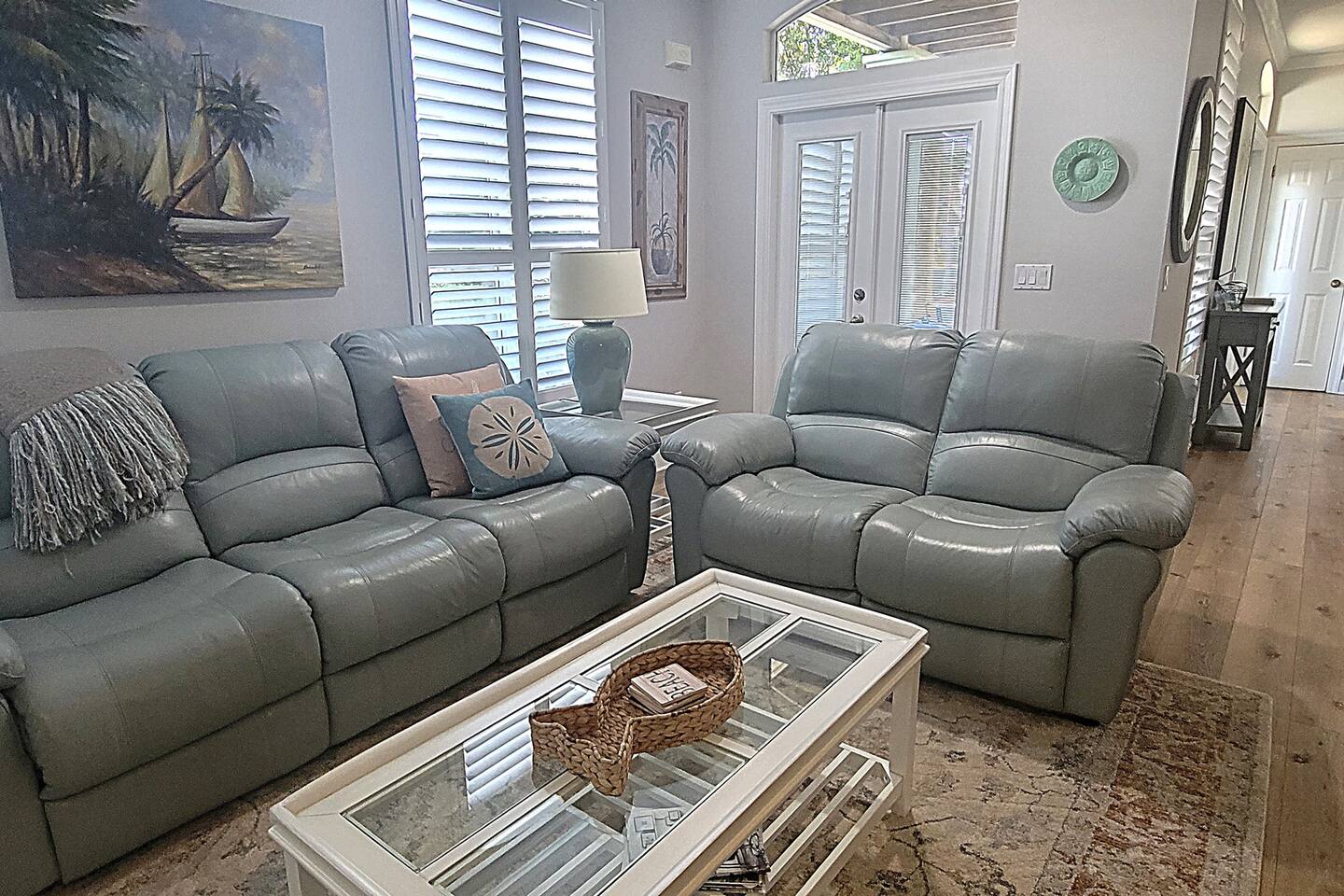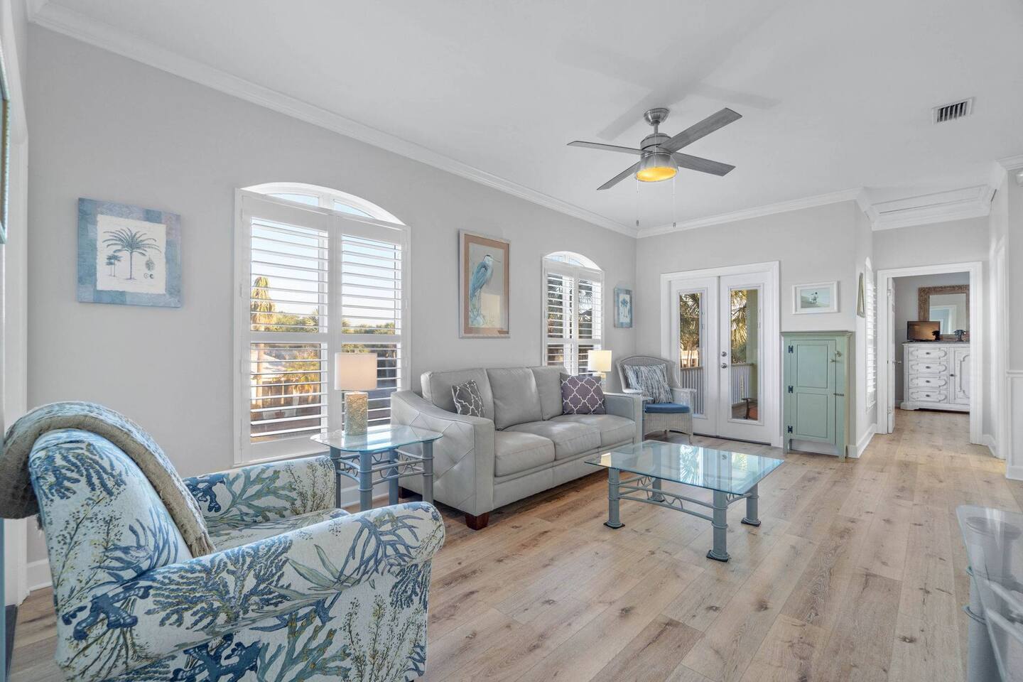 EMERALD SHORES is a gated community of 95 Caribbean-Style, privately-owned homes. The community has two entrances - One on the north side off Hwy 98 and a second on the south side off Scenic 98. Having two entrances provides ease and flexibility when exploring the area and nearby attractions. There are two community swimming pools, one of which is heated during the cooler seasons. Serendipity is right around the corner from the main pool. And the north pool is only 4 houses away from our doorstep. There is also a tennis and basketball court on the north side of the community. Throughout Emerald Shores, you will see well-maintained sidewalks, shaded benches, bike racks, and pet waste stations. Emerald Shores offers a complimentary shuttle that runs from mid-May to mid-August. Hop on the shuttle as it travels through the community and hop off when you reach your destination. (Beach entrance, Pool, Tennis Court, or maybe a friends house!) The gated private beach offers a full-service beach pavilion with snack bar, restrooms, rinse showers, picnic tables, and plenty of room to park your bikes or beach wagon.